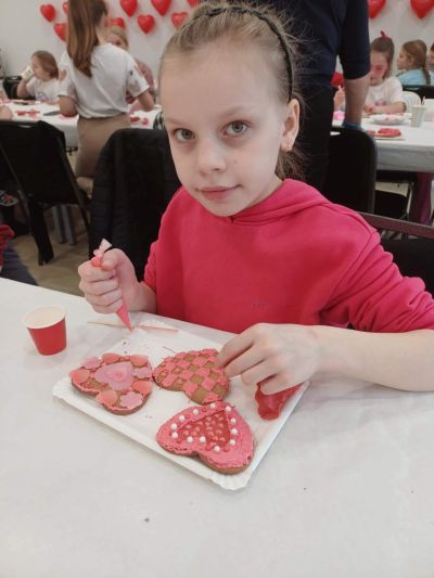 Z okazji zbliżających się Walentynek zorganizowaliśmy warsztaty dekorowania ciasteczek walentynkowych. Dzieci z ogromnym zaangażowaniem ozdabiały swoje wypieki lukrem, masą cukrową, jadalnym papierem, kolorowymi posypkami – powstały prawdziwe, małe dzieła sztuki!