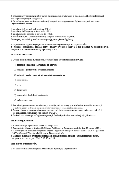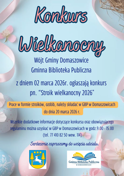 Prace należy składać w Gminnej Bibliotece Publicznej w Domaszowicach.