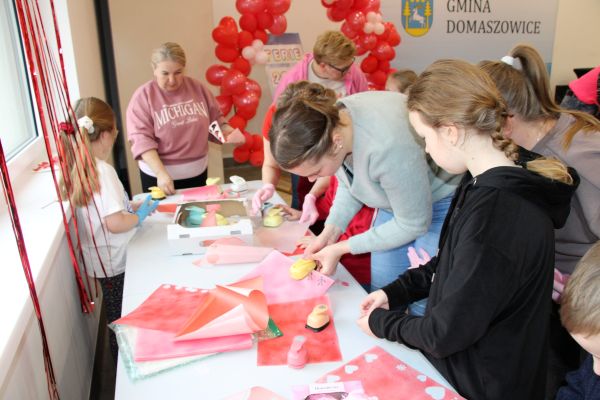 W dniu 14 lutego 2023 r. dzieci wzięły udział w warsztatach plastyczno-florystycznych, podczas których własnoręcznie robiły walentynkową kompozycję kwiatów w wazonie oraz kartki walentynkowe. Warsztaty prowadziła Izabela Śliwa-Lyko z Kwiaciarni Okolicznościówka z Domaszowic. Uczestnicy zajęć poznali tajniki układania kwiatów, a także dowiedzieli się co należy zrobić, aby kwiatowe kompozycje były naprawdę wyjątkowe. Dzieci były bardzo pomysłowe i kreatywnie wykonywały powierzone im zadania. Powstały niepowtarzalne upominki walentynkowe.