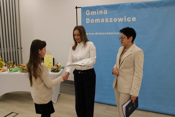 Zwycięzcom konkursu Wójt Gminy Domaszowice Urszula Medyk pogratulowała pomysłów i wykonania prac oraz wręczyła nagrody i dyplomy. Dla pozostałych uczestników za udział w konkursie wręczyła dyplom i słodki upominek.