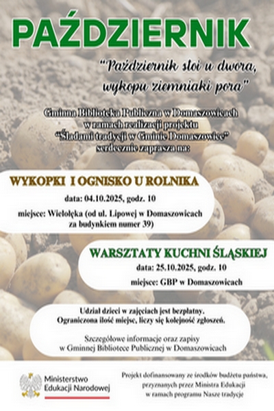 Zapraszamy na październikowe wydarzenia w ramach projektu "Śladami tradycji w Gminie Domaszowice"!