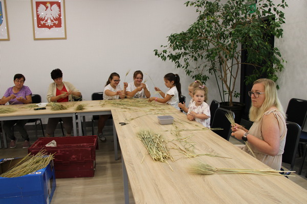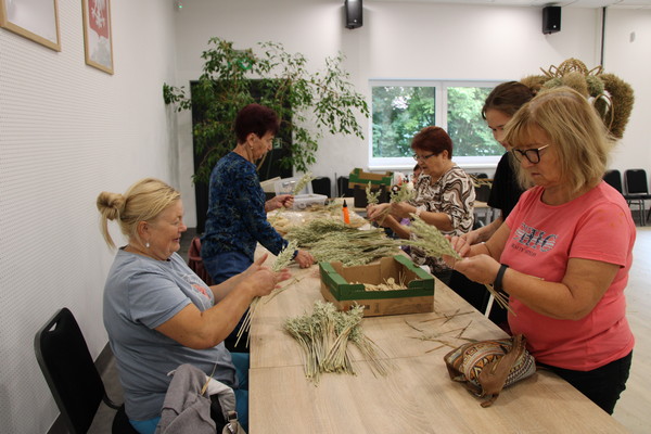 25 sierpnia 2025 r. zakończyliśmy warsztaty plecenia wieńca dożynkowego.