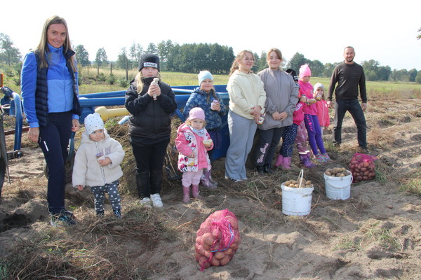 Odwiedziliśmy gospodarstwo Pana Przemysława Wiącka, który pokazał nam, jak wykopuje ziemniaki i jak je zbiera. Uczestnicy mogli zobaczyć z bliska, jak wygląda praca rolnika i sami spróbować swoich sił w wykopkach.
