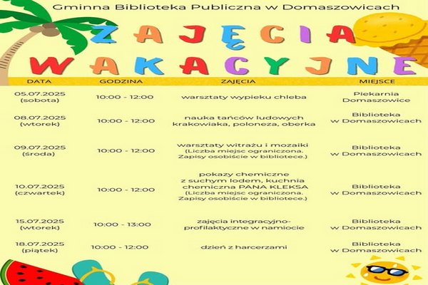 Zajęcia wakacyjne dla dzieci zorganizowali: Wójt Gminy Domaszowice, Gminna Komisja Rozwiązywania Problemów Alkoholowych oraz Gminna Biblioteka Publiczna w Domaszowicach.