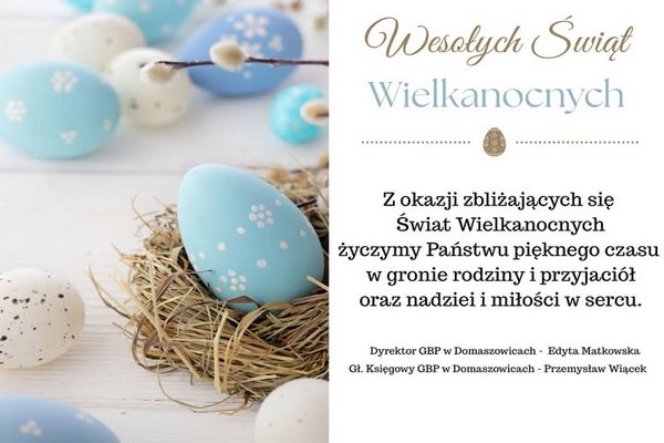 W dniu 23 marca 2023 r. w Gminnej Bibliotece Publicznej w Domaszowicach odbyło się wręczenie dyplomów i nagród Laureatom XIII edycji konkursu "Stroik Wielkanocny 2023". Celem konkursu było propagowanie tradycji związanej z tematyką Świąt Wielkanocnych, stworzenie