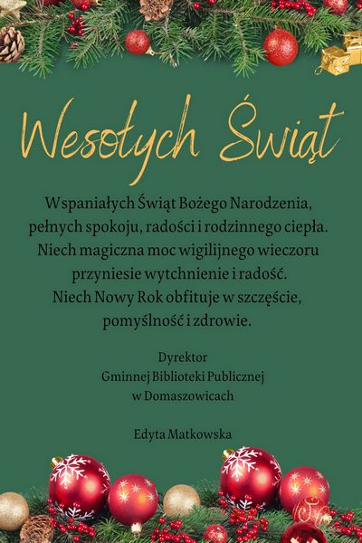 W grudniu zapraszamy wszystkie dzieci do udziału w wyjątkowym wydarzeniu przygotowanym przez Gminną Bibliotekę w Domaszowicach.