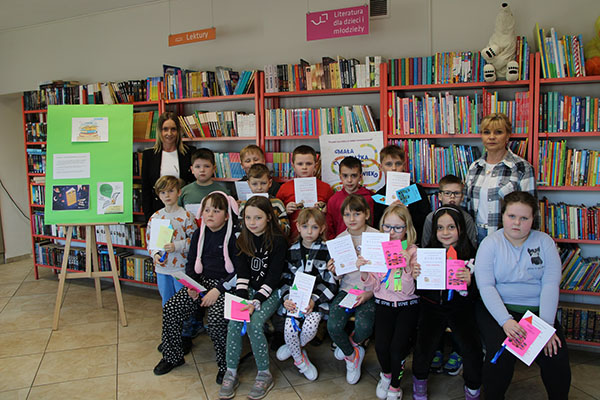 W dniu 21 kwietnia 2023 r. dzieci ze Szkoły Podstawowej im. Stefana Żeromskiego w Domaszowicach wzięły udział w zajęciach zorganizowanych przez Gminną Bibliotekę Publiczną w Domaszowicach. Głównym celem zajęć było zachęcenie najmłodszych czytelników do korzystania z biblioteki, wypożyczania książek oraz nieustannego rozwijania umiejętności czytania. Uczestnicy zajęć dowiedzieli się, jak należy dbać o książki i jak z nich korzystać. Odgadywały także bajkowe zagadki, które sprawdziły ich znajomość bohaterów baśni i bajek. Dzieci z dużym zaangażowaniem uczestniczyły w zorganizowanych dla nich zajęciach oraz przekonały się jak wiele radości i niespodzianek mogą dostarczyć książki. Przy tej okazji odbyło się pasowanie uczniów klasy I ze Szkoły Podstawowej w Domaszowicach na czytelników biblioteki. Po uroczystym pasowaniu nowi czytelnicy otrzymali pamiątkowy dyplom, zakładkę do książki i słodki upominek.